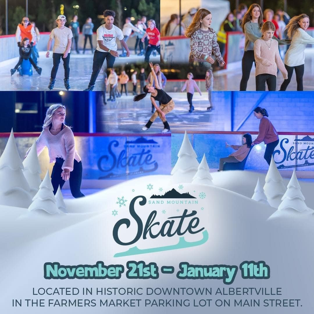 Albertville, AL – (10/8/24) – Sand Mountain Skate is excited to announce its relocation from the Sand Mountain Amphitheater to the Downtown Albertville Farmers Market. This move marks an exciting new chapter for the city's Christmas season, bringing the popular skating experience into the heart of Albertville’s vibrant downtown district.